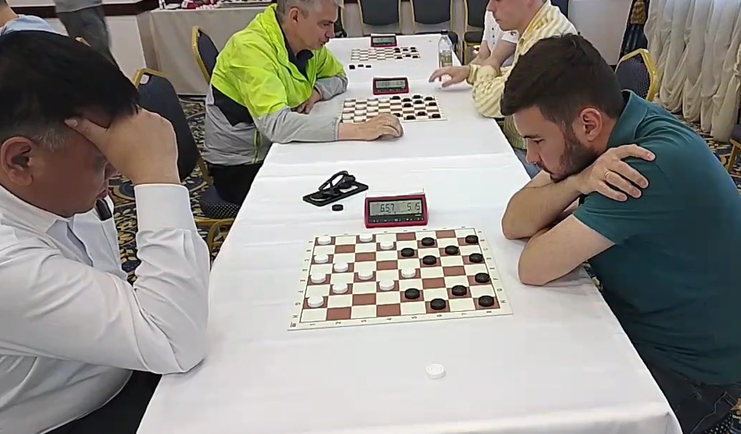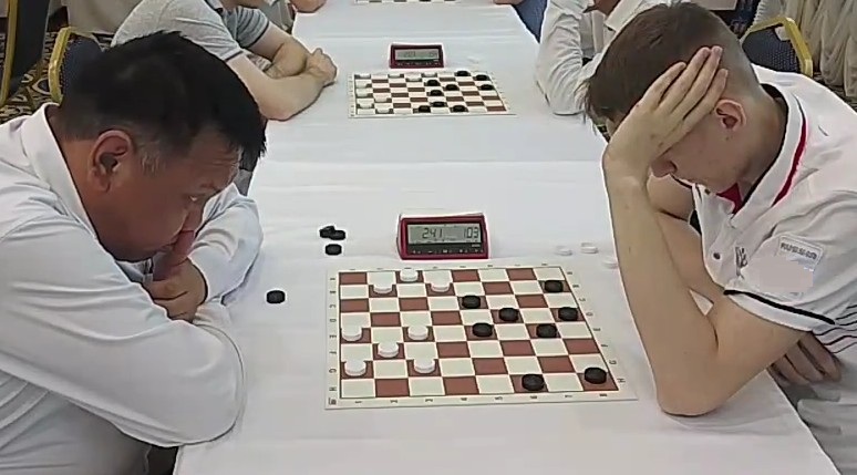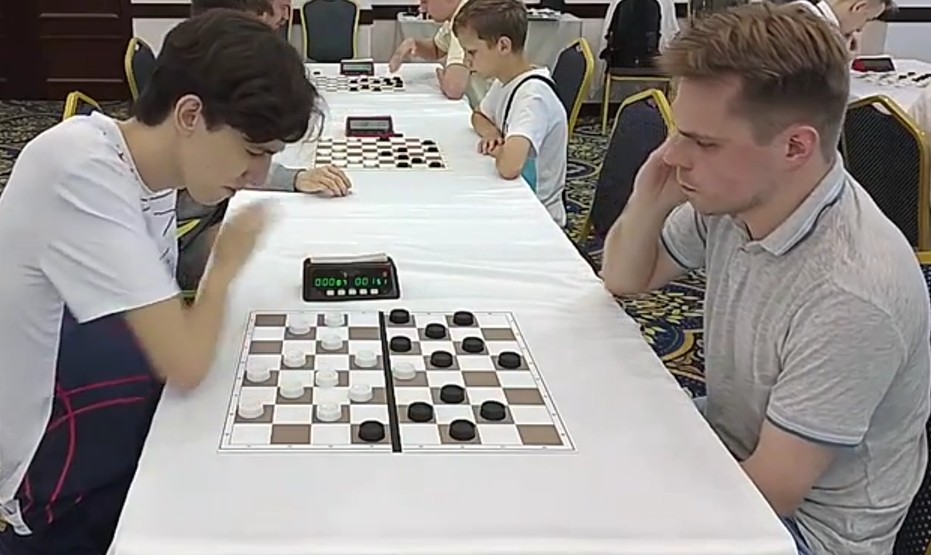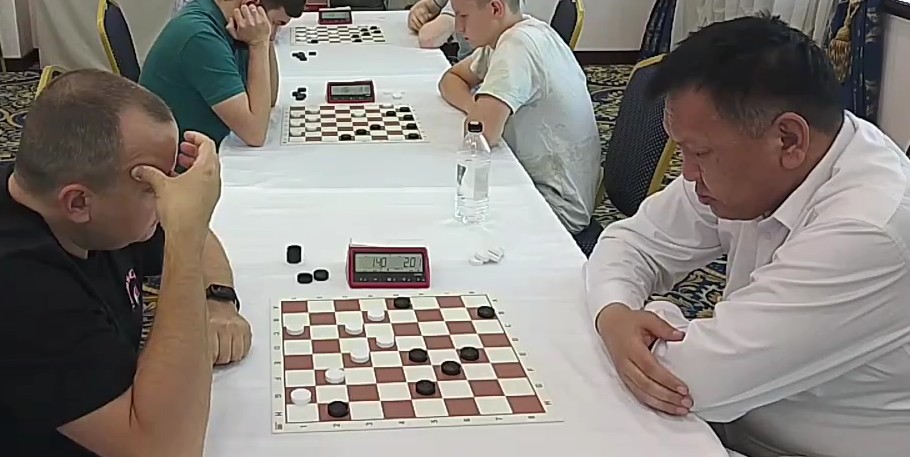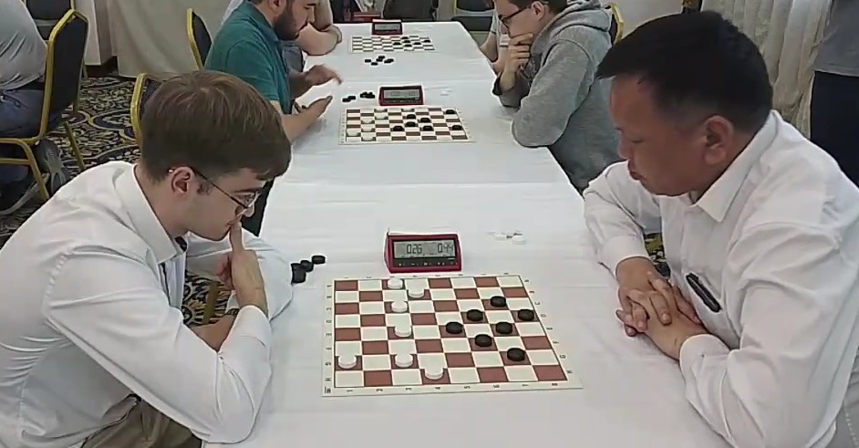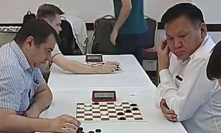 18…cb6 19.ba5 dc5 20.a:c7 d:b6 21.cb4 ed6 22.ba5 gh6 23.a:c7 d:b8 24.ef4 cd4 25.f:d6 dc3. Роли поменялись, теперь уже чёрные играют на победу.