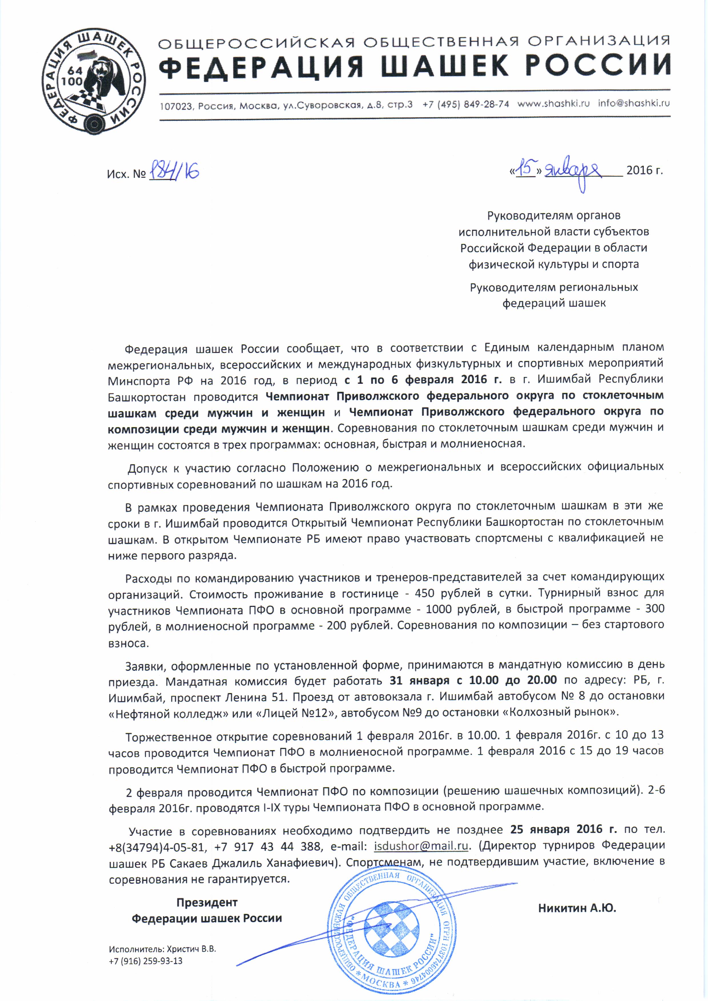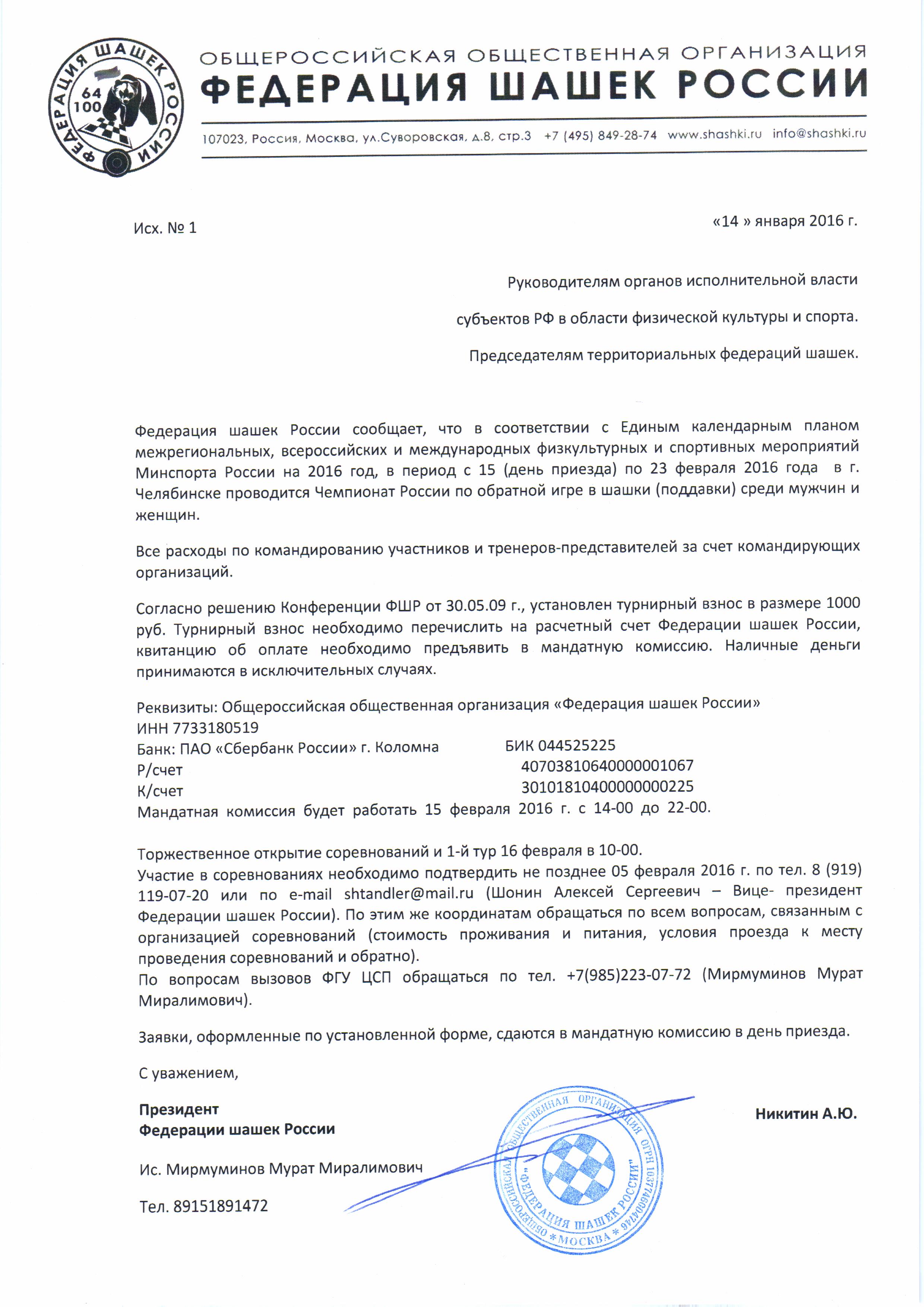 В период с 4 по 13 марта в д. Кошкино (Ленинградская обл.) пройдут Первенства России среди юношей и девушек до 16, 19, 23 лет по русским шашкам. Скачать положение и информацию |