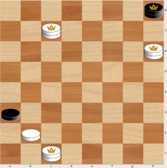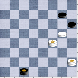 В каждой позиции добавьте одну чёрную шашку на любое поле (не под бой) так, чтобы белые при своём ходе могли выиграть. Проявите свою смекалку!