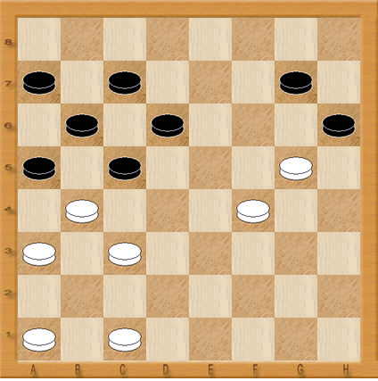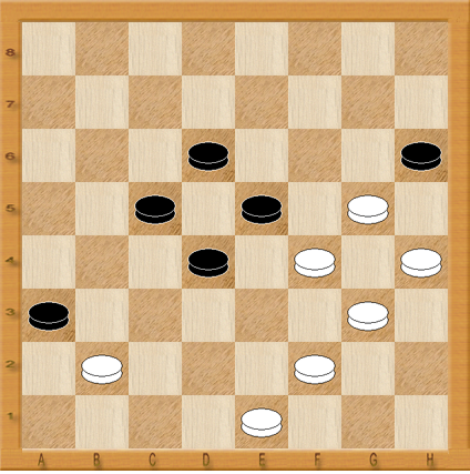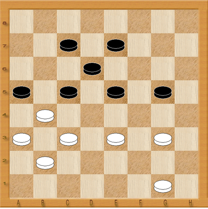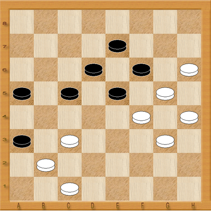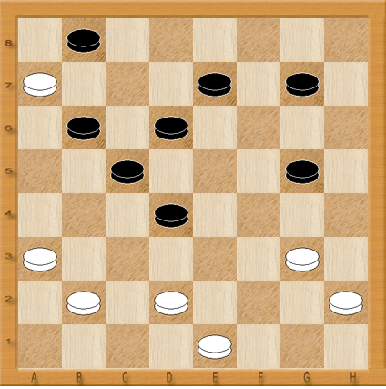 Решение 1.dc3! de3 ( 1…de5 2.cb4 ed6 3.bc3! db2 4.ac1 ca3 5.ae7 X ) 2.ed2!! ec1 3.cd4! ce3 4.ac5 db4 5.ac5 cd6 6.gf4 eg3 7.hf2 X