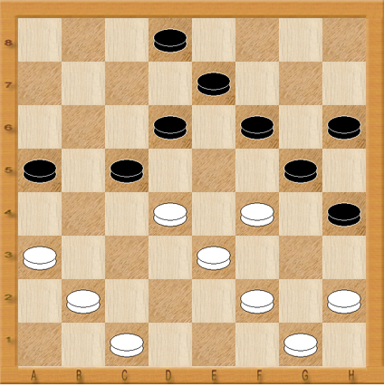 Решение 1.de5 fd6 2.cd4! ae5 3.fg3 db4 4.ed4 ec3 5.ef2 ce1 6.gh4 eg3 7.hh4 X